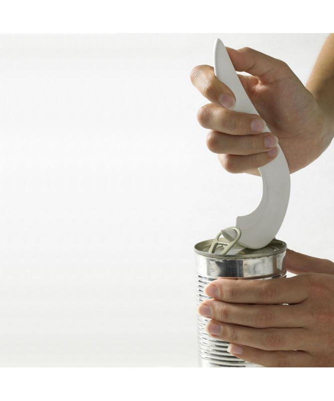 Para utilizar, basta colocar a ponta do utensílio sob o anel da lata e puxar a alça, removendo a tampa de forma simples, controlada e sem esforço.