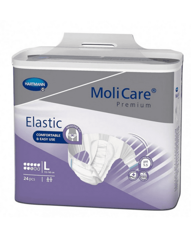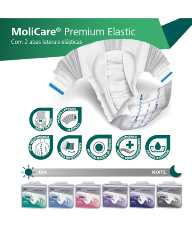 A Molicare® Fralda Elastic é indicada para incontinência urinária moderada a muito grave, adequada para pessoas ativas ou pacientes acamados.
