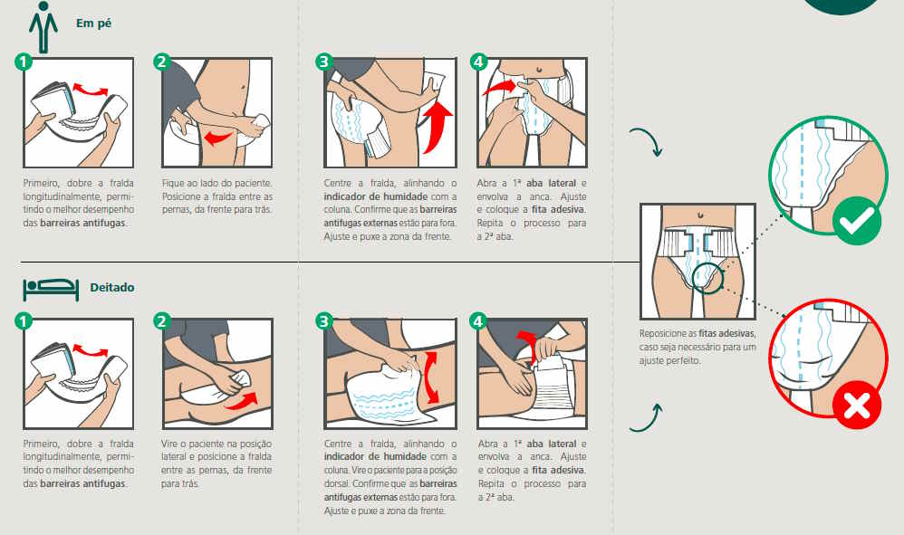 Troca fácil e preservação da dignidade: Permite conservar a intimidade do paciente 20% mais do que outras fraldas de qualidade.
