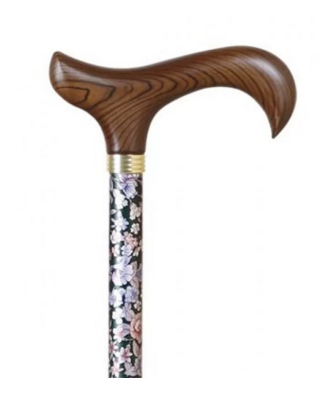 A bengala extensível de alumínio é uma ajuda prática e elegante para a mobilidade diária. Fabricada em alumínio leve com estampa de pequenas flores, possui punho de madeira ergonômico e ponteira de borracha para maior estabilidade.