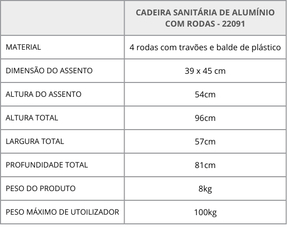 CADEIRA SANITÁRIA DE ALUMÍNIO COM RODAS - 22091