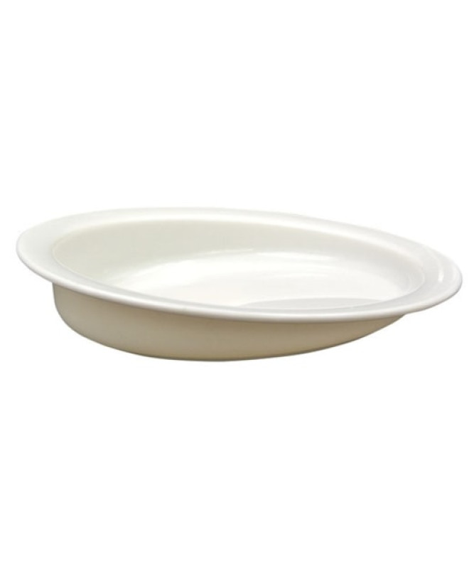 Design ergonômico: A parte traseira alta e a frente baixa permitem que os alimentos deslizem para baixo para o fundo do prato, facilitando o uso com apenas uma mão.